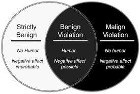 Now there’s the compelling “benign violation theory,” which doesn’t sound funny but is more inclusive. University of Colorado psychology professor Peter McGraw, an expert in emotion and behavior decision theory believes that “humor occurs only when and only where three conditions are satisfied: 1). A situation is a violation, 2). The situation is benign, and 3). Both