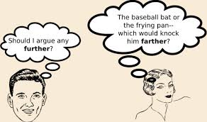 alk at allowing “defuddle” and “gruntle,” despite saying “befuddle” and “disgruntle” are fine. She’s not alone. Local wit-about-town Bill Stringer’s another, urging me to castigate in print those not knowing the proper use of “further” and “farther.” However, the American Heritage Dictionary notes that “ ‘Farther’ and ‘further’ have been used interchangeably by many writers since the Middle English period. Accord