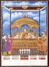 ravels Through Turkey and Persia to the Indies.” Tavernier wrote it “was in form like one of our Field Beds, six foot long and four broad,” with a round bolster in the back and flat cushions on the sides. But it was the jewelry that amazed him. The throne included, “about 108 Rubies … the least of which weighed a hundred Carats,” 160 emeralds, and the canopy was “all embroidered with Pearls and Diamonds.” Atop stood a golden “Peacock with its tail spread, consisting all of Saphires and other proper color’d Stones.”