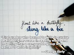 That reminded me of “The Comeback of Cursive,” an article in Economist.com that described French and Norwegian neurophysiologists’ research indicating “that different parts of the brain are stim